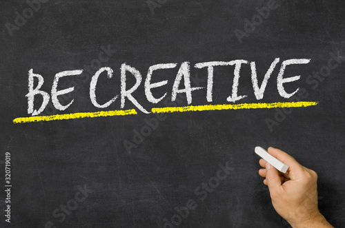Fototapeta premium Be creative written on a blackboard