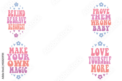 Naklejka premium Be Kind Be Brave Be Honest, prove them wrong baby, Make Your Own Magic, Love Yourself More retro keychain designs