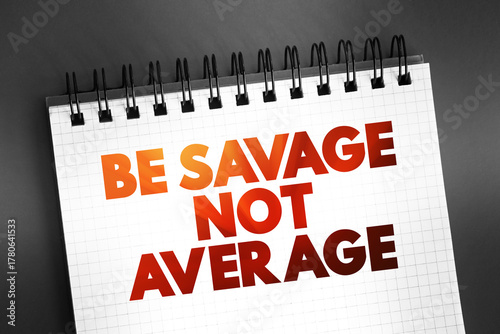 © dizain, Fototapeta premium Be Savage Not Average text on notepad, concept background