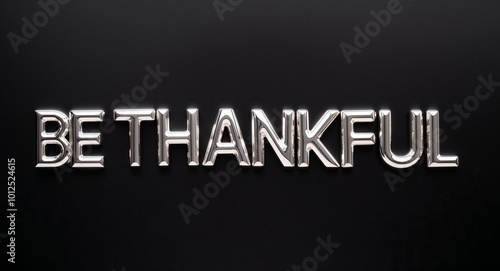 © Erlinda, Fototapeta premium be thankful silver shining shiny solid metallic lettering on plain black background