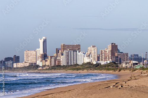 Naklejka premium Beach Against Durban City Skyline in South Africa