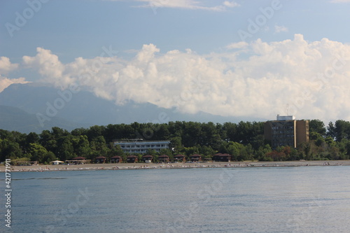 © Александр Семыкин, Fototapeta premium Beach and hotels in pine grove