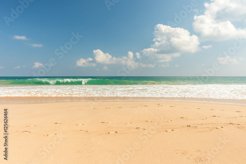 © yotrakbutda, Fototapeta premium beach and sea with blue sky