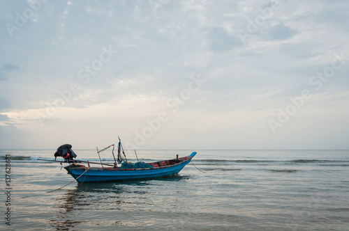 Naklejka premium Beach and tropical sea with long-tail boat in thailand