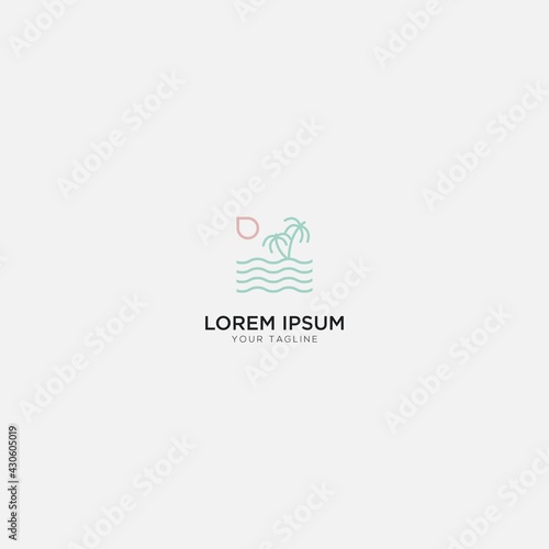 Obraz premium beach and wave sea logo palm