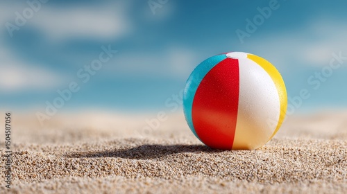 © Jane Kelly, Obraz premium Beach ball on sandy shore