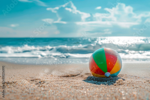 Obraz premium Beach Ball Resting on Sandy Shore