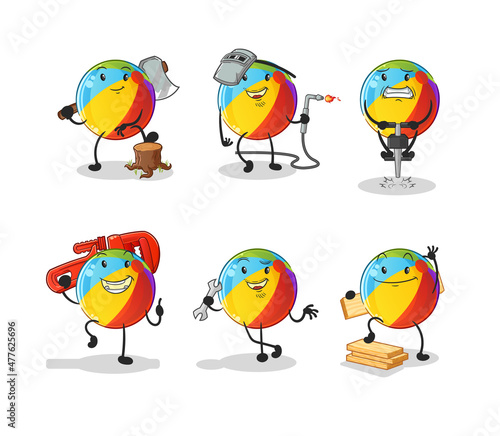 Obraz premium beach ball worker set character. cartoon mascot vector