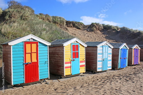 Naklejka premium Beach huts at Saunton Sands beach, Devon