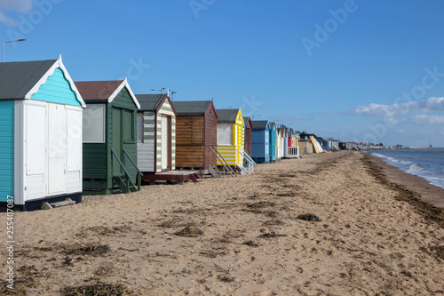 © chillingworths, Naklejka premium Beach huts at Thorpe Bay, Essex, England