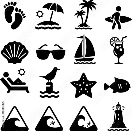 © Marc, Fototapeta premium Beach Icons - Black Series