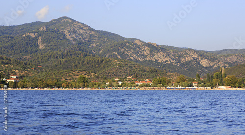 Fototapeta premium Beach in Neos Marmaras and mountains of Sithonia.
