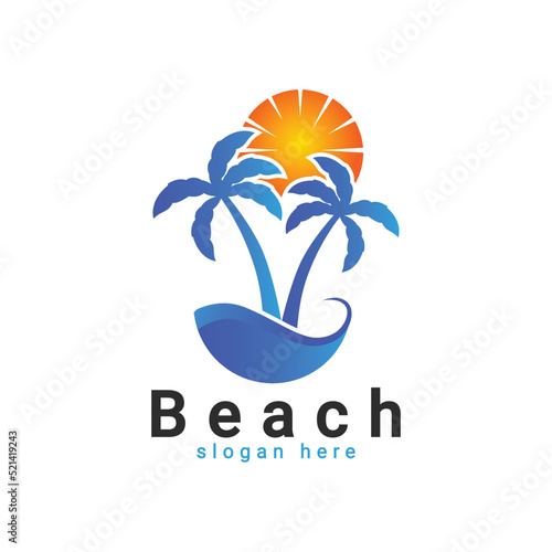 Naklejka premium Beach logo, tropical island logo, Palm or coconut tree summer logo template