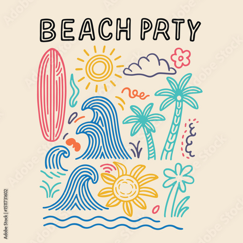 Naklejka premium Beach party tropical colorful poster .Festival vector Illustration placard....