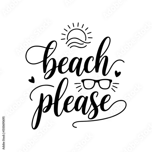© Maslikhatul, Obraz premium Beach Please. Summer Quotes Vector Design Isolated on White Background