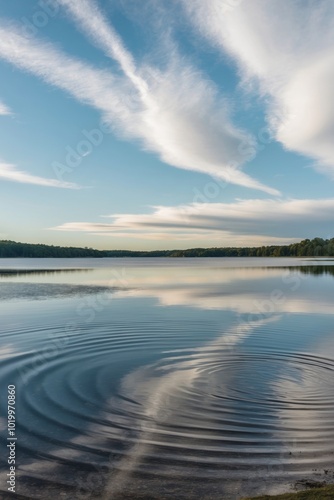 © DEER FLUFFY, Fototapeta premium Beach reflected lake colors wind lights landscape through sky above of in clear.