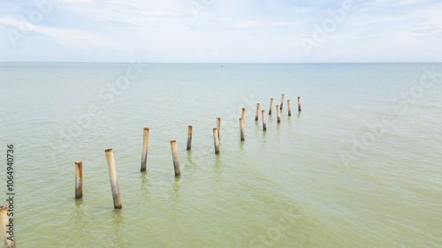 © bubbers, Fototapeta premium Beach Serenity.Old Posts and Calm Waters