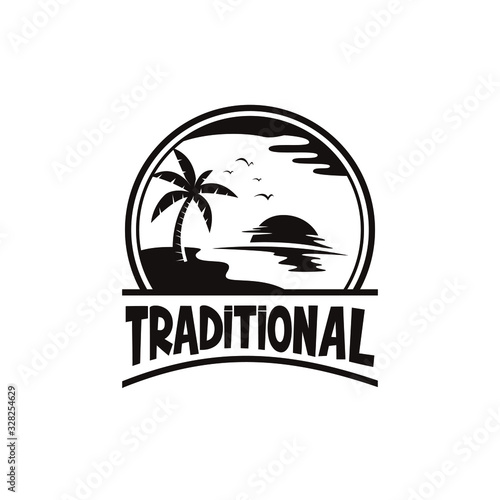 © veeza_design, Naklejka premium Beach Traditional Black White logo vector