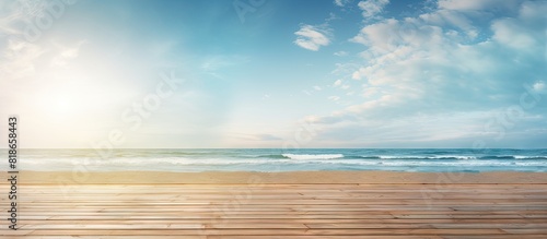 © vxnaghiyev, Obraz premium Beach view with a sun filled sky overlooking the boardwalk Copy space image