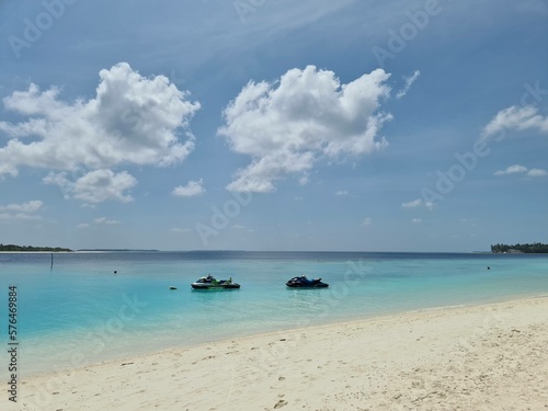 © ElseThen, Fototapeta premium beach with blue sky and water scooter