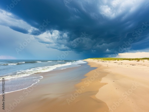 Fototapeta premium Beach with dark storm clouds gathering on the horizon