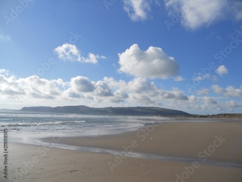© NigelCreaser, Fototapeta premium Beach with hills and cloud against a blue sky