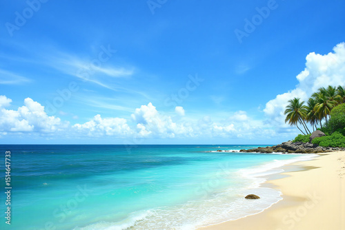 © He, Fototapeta premium beach with palm trees and a white sand beach