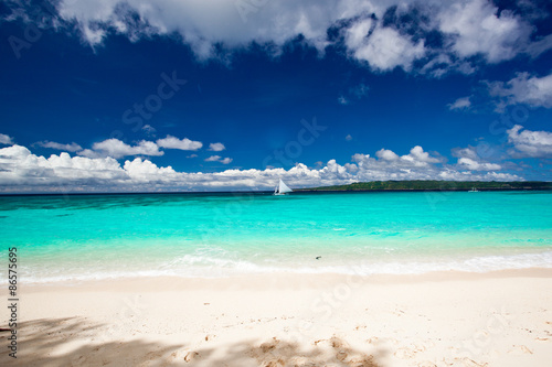 © photopixel, Fototapeta premium Beach with sailboat in ocean