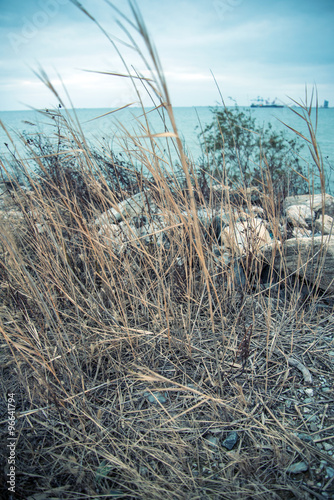 © cacaroot, Obraz premium beach with weeds at sunset