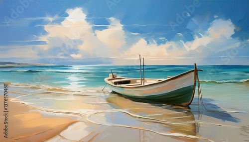 Naklejka premium Beached Boat Beneath a Clear Blue Sky