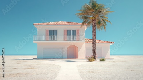 Fototapeta premium Beachfront villa with palm tree.