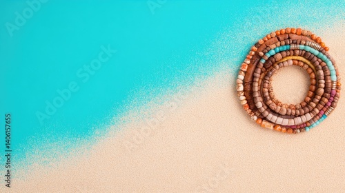 © Design By Reiga, Naklejka premium Beaded strands circular array earthy tones gradient background texture