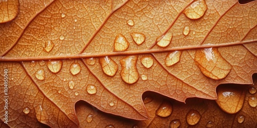Fototapeta premium Beads of water glistening Leaf with dew A detailed ma