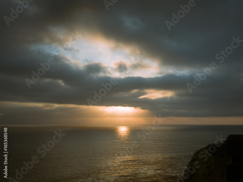 © Immanuel, Obraz premium Beams of sunlight show through a cloudy sky onto the ocean