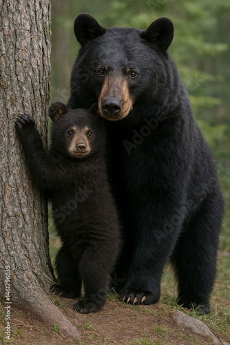 © samuel, Fototapeta premium bear and cub in the forest