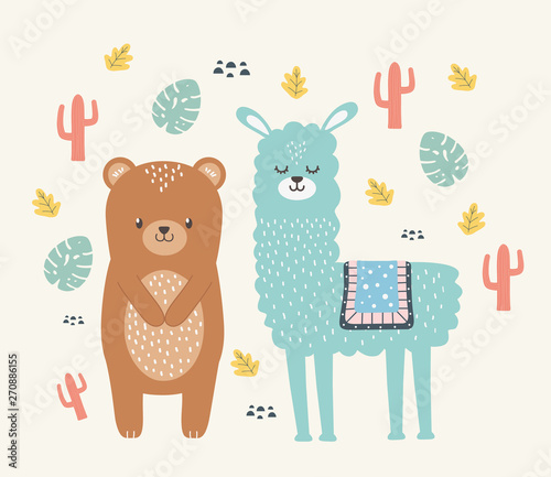 © Stockgiu, Obraz premium Bear and llama cartoon design vector illustration