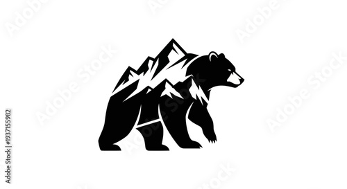 Obraz premium Bear and mountain silhouette
