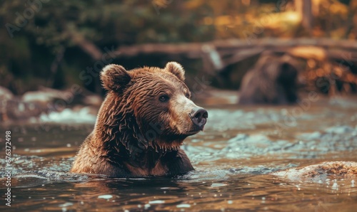 © TheoTheWizard, Obraz premium Bear bathing in a river cool water