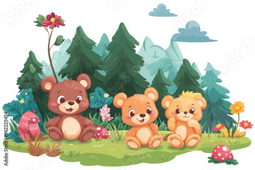 Fototapeta premium bear bears animals wildlife cartoon forest children cute nature colorful illustration playful happy playful bears forest scene cartoon animals family of bears