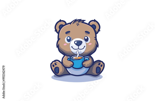 © Rezz, Obraz premium Bear coffee logo vector icon illustration style