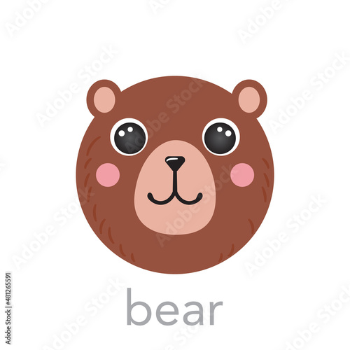 © Vectoressa, Fototapeta premium Bear Cute portrait with name text smiley head cartoon round shape animal face, isolated vector icon illustrations on white background. Flat hand drawn for kids poster, mobile, t-shirts, baby clothes