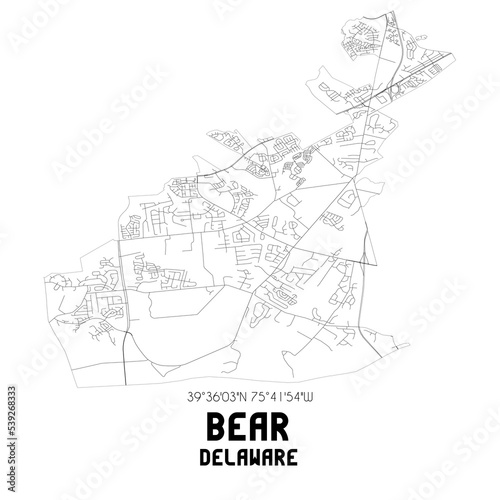 Fototapeta premium Bear Delaware. US street map with black and white lines.
