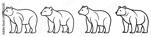 © chekman, Fototapeta premium Bear icons set. Minimalist black and white illustration of a bear standing in profile. Vector illustration.