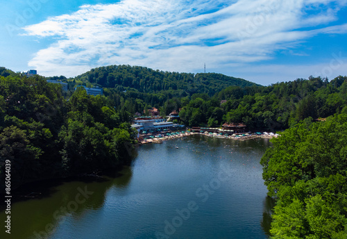 © sebi_2569, Fototapeta premium Bear lake from the Sovata resort - Romania seen from above