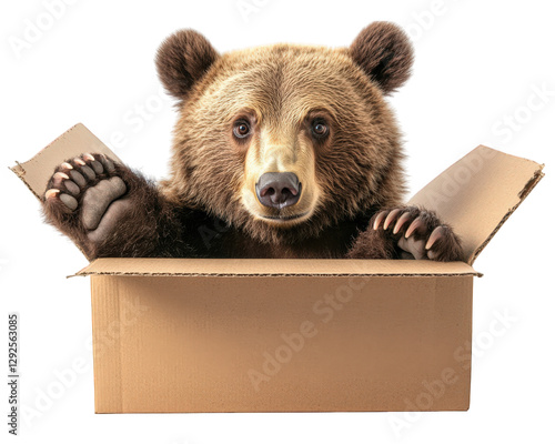 © Alice a., Fototapeta premium bear looking puzzled while trying to fit into tiny box, showcasing its playful nature and curiosity. This amusing scene captures essence of unexpected moments in wildlife