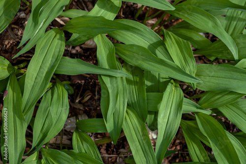 Obraz premium Bear’s garlic fresh green leaves