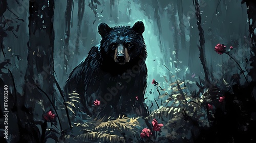 © Nikita, Fototapeta premium Bear walking in the wild , comic book style