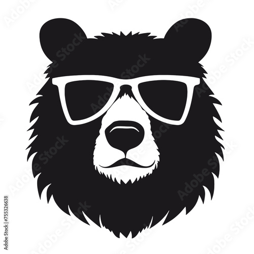 © vectorcyan, Obraz premium Bear Wearing Glasses Logo Monochrome Design Style