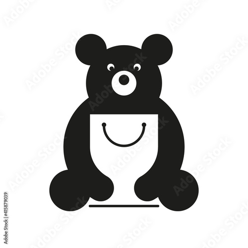 Fototapeta premium Bear with a bag in his hands. Bear logo with white shopping bag on white background. Vector, illustration