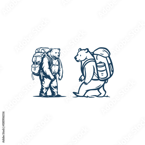 © Seraphyn, Fototapeta premium Bear with backpack hiking logo design vector vintage